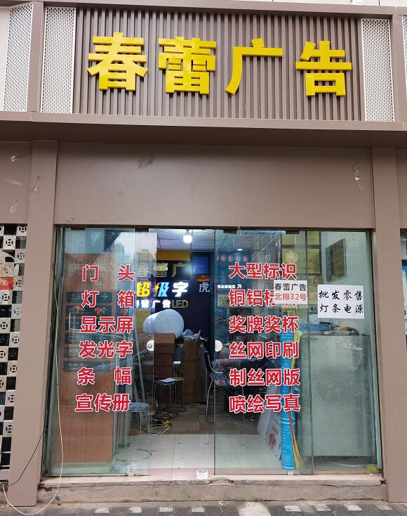 西安春蕾廣告制作有限公司專業(yè)制作安裝各種門頭,燈箱,發(fā)光字,形象墻,顯示屏,水晶字、PVC字、不銹鋼精工字,各種標識、標牌,樓體亮化等。