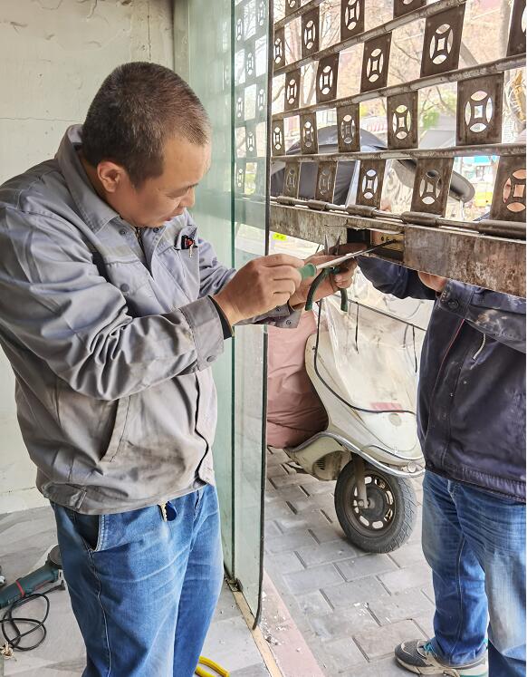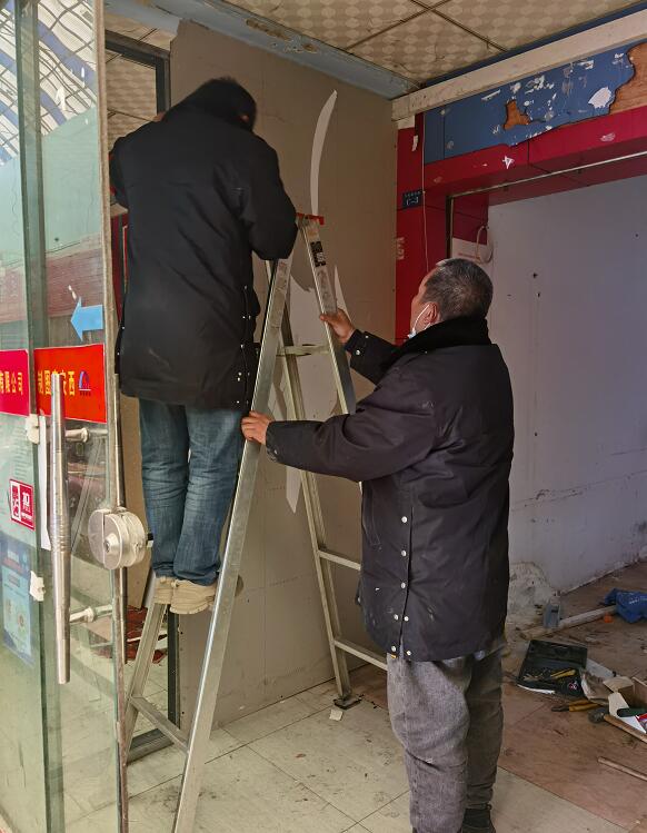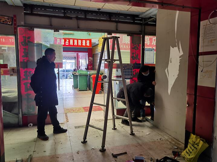 裝上嶄新的玻璃門、換上安全的手拉門鎖、重新規(guī)劃走線路、隔墻、拆墻、忙的不可開交,就是為了讓每一家商戶的安全更加牢固,讓每一家的環(huán)境更加敞亮。