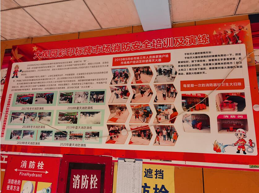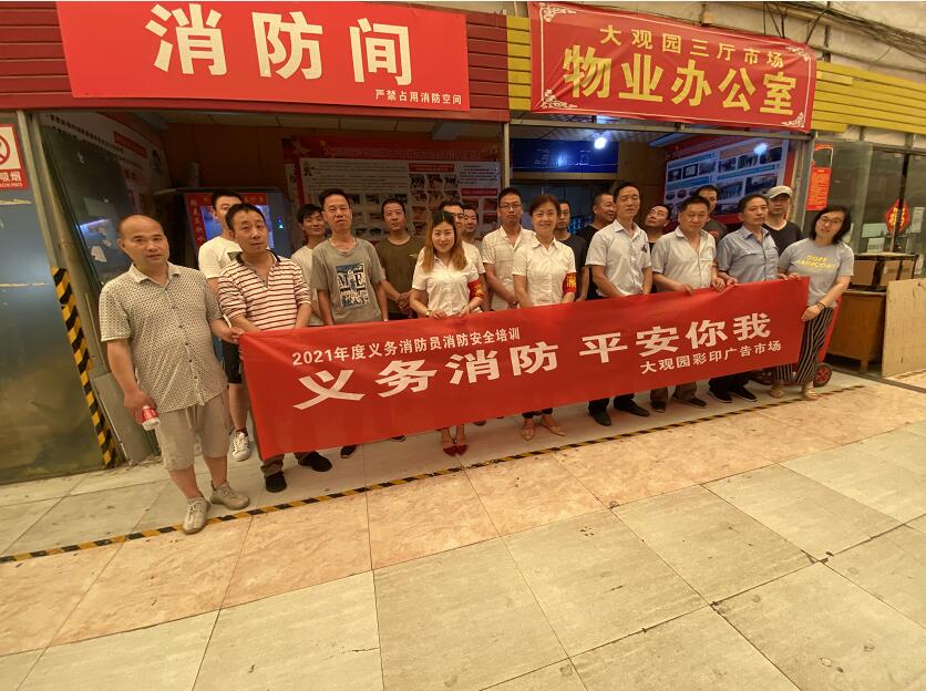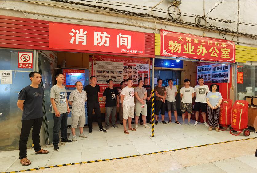 在建黨節(jié)來(lái)臨之際,西安大觀園彩印標(biāo)牌市場(chǎng)辦為了提高各位消防員的反應(yīng)能力、應(yīng)急能力、熟練掌握操作消防設(shè)備及器材的操作力,也為了確保市場(chǎng)整體安全,市場(chǎng)辦于6月30號(hào)上午10點(diǎn)(星期3)在市場(chǎng)物業(yè)辦公室門(mén)口再次進(jìn)行了集中培訓(xùn)。