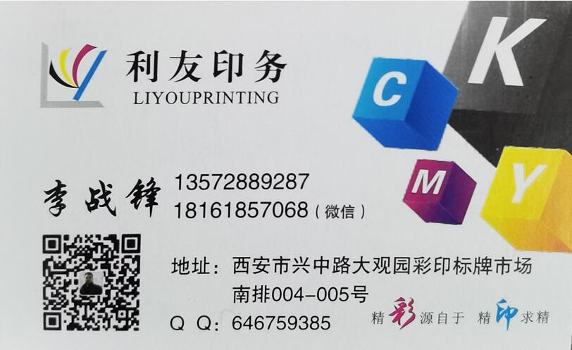 西安大觀園彩印標(biāo)牌市場(chǎng),西安印刷廠,西安印刷包裝,西安廣告公司南排004-005號(hào)利友印務(wù)李戰(zhàn)鋒李老板就是一位自律又優(yōu)秀的企業(yè)家,因?yàn)?,他把市?chǎng)當(dāng)做家。