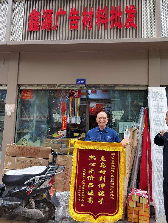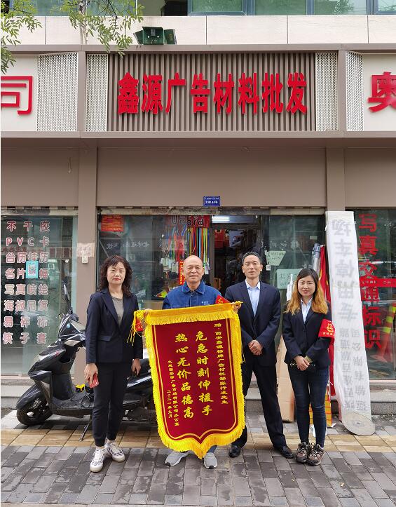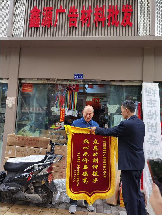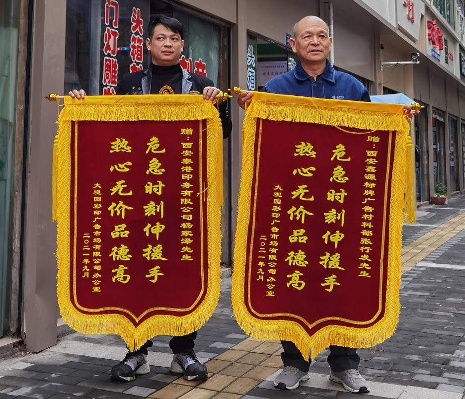 “危難時(shí)刻伸援手,熱心無(wú)價(jià)品德高”這面落款為2021年9月的錦旗,連同一個(gè)大大的紅包,在國(guó)慶佳節(jié)上班的第一天由市場(chǎng)辦查主任及孫師和李師共同護(hù)送到西安鑫源標(biāo)牌廣告、西安泰港印務(wù)兩家優(yōu)秀商戶手中 ,當(dāng)中究竟發(fā)生了什么,錦旗又隱含何種情意......