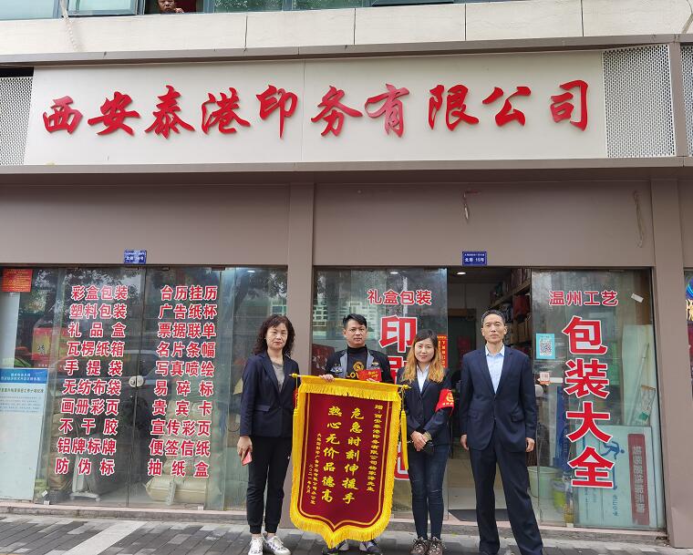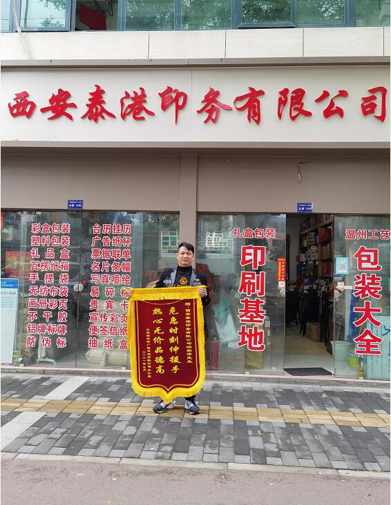 雖然是一面小小的錦旗,但彰顯了市場(chǎng)辦的感恩之情,市場(chǎng)辦感恩商戶們的奉獻(xiàn),感謝商戶們的配合,錦旗雖小,意義非凡,在有限的空間內(nèi),大觀園彩印市場(chǎng)網(wǎng)絡(luò)部也全力宣揚(yáng)兩家商戶的高尚品德,在西北印刷網(wǎng)上醒目位置刊登廣告位為你們推廣宣傳,祝你們生意紅火騰騰起,財(cái)運(yùn)亨通步步高!